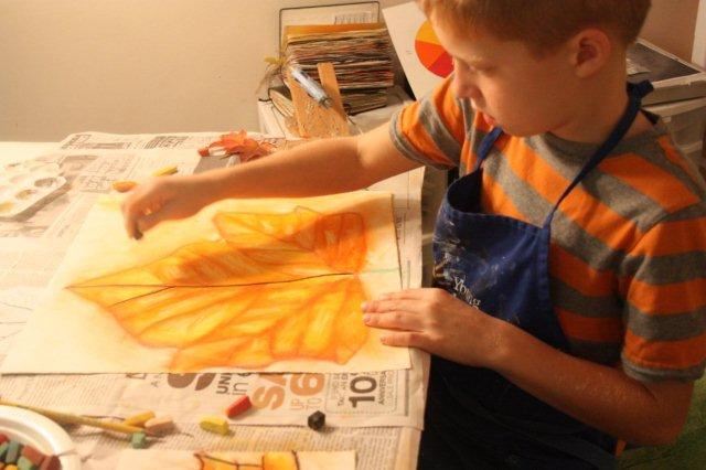 - Note: I made a "master" leaf and traced copies (placing on window) so I could make more than one leaf mobile